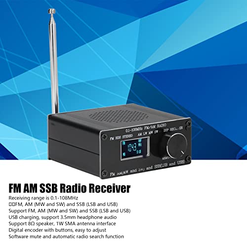★ Breed ontvangstbereik: de full-band radio-ontvanger heeft een ontvangstbereik van 0,1-108 MHz, ondersteunt FM, AM (MW en SW) en SSB (LSB en USB). Frequentiestapschakelaar (1, 5 en 10 kHz)