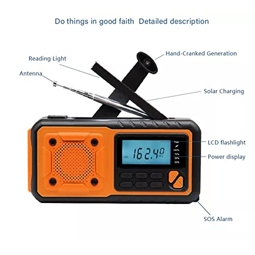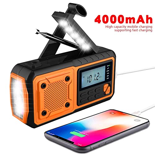 Specification: Lencyotool Crankradio, draagbare zonne-radio, noodradio bij Fm, 4000 mAh, oplaadbaar, met USB-oplaadfunctie voor mobiele telefoon, led-zaklamp/leeslamp, handleiding en SOS-sirene, voor wandelen, kamperen, 1 verpakking
