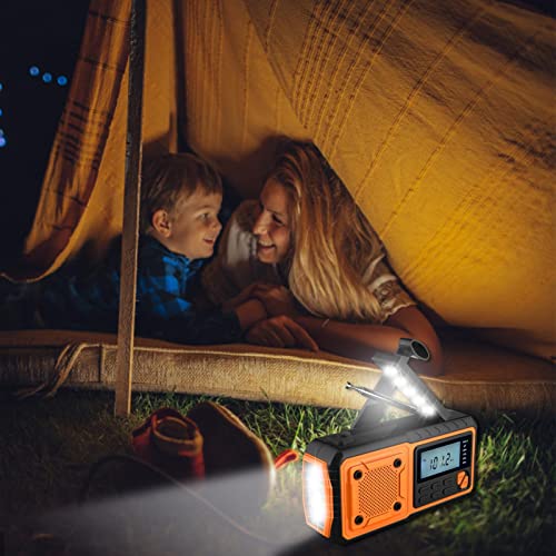 Lencyotool Crankradio, draagbare zonne-radio, noodradio bij Fm, 4000 mAh, oplaadbaar, met USB-oplaadfunctie voor mobiele telefoon, led-zaklamp/leeslamp, handleiding en SOS-sirene, voor wandelen, kamperen, 1 verpakking