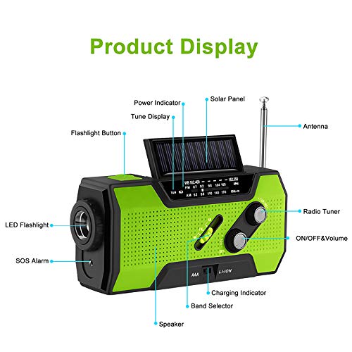 【MULTIFUNCTIONEEL : Tien Functies in Één】- Heb je een draagbare radio nodig? Een waterdichte radio met 10 functies nodig? Onze veelzijdige radio’s hebben alles wat je nodig hebt. 4 oplaadmodi: zonne-energie, handslinger, AAA-batterij en USB-datakabel, gebruikt als powerbank om andere elektronische apparaten op te laden, met koplamp en bureaulamp, SOS-alarmfunctie, multifrequentie luisteren naar de radio, weersvoorspellingsfunctie, perfect voor buiten gebruik.