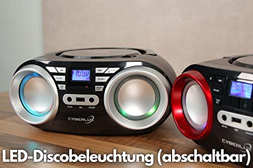 Draagbare cd-speler | led-discoverlichting | boombox | CD/CD-R | USB | FM-radio | AUX-ingang | hoofdtelefoonaansluiting | 20 geheugensleuven | kinderradio | CD-radio | compact systeem (zwart/zonnig