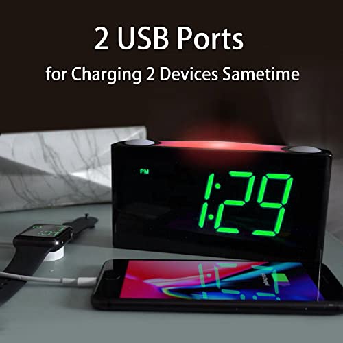 Wekker met Stekker, Wekker Digitaal met Licht&Oplader, Alarmklok -7”Groot Display Verstelbare Helderheid, 7 Kleuren Nachtlampj, Instelbaar Volume, Snooze-functie voor Meisje, Slechthorenden&Kinderen