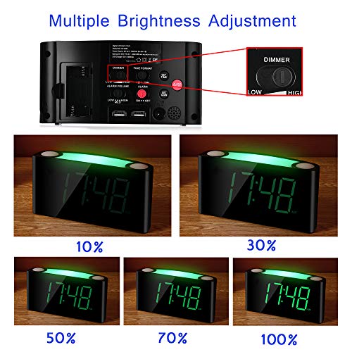 Specification: Wekker met Stekker, Wekker Digitaal met Licht&Oplader, Alarmklok -7”Groot Display Verstelbare Helderheid, 7 Kleuren Nachtlampj, Instelbaar Volume, Snooze-functie voor Meisje, Slechthorenden&Kinderen